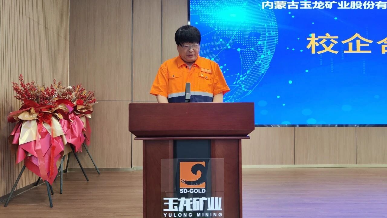 仪式上,内蒙古玉龙矿业股份有限公司董事长樊明玉首先致辞,对张光存院长一行的到来表示欢迎,他提到玉龙矿业在矿产资源勘查、智能化矿山建设等领域积累了丰富实践经验,期待借助高校科研与人才优势推动公司发展和进步。随后,张光存院长介绍了公司在矿业人才培养、学科建设上的成果,强调此次合作对深化产学研融合、提升员工实践能力、推进大员工就业等方面的重要作用。