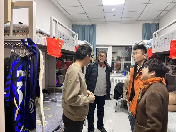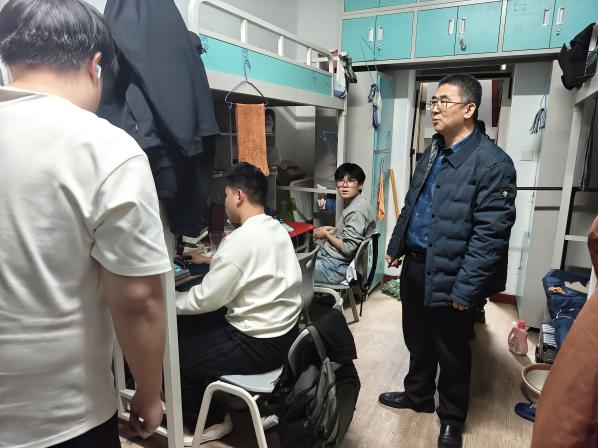 随后,公司五位领导带队深入员工宿舍开展实地检查。院领导一行仔细查看宿舍环境卫生、安全用电、物品摆放等情况,与同学们亲切交流,详细了解大家的学习生活状态,对发现的问题现场提出整改意见,强调要牢固树立安全意识,共同营造整洁、文明、安全的宿舍环境。