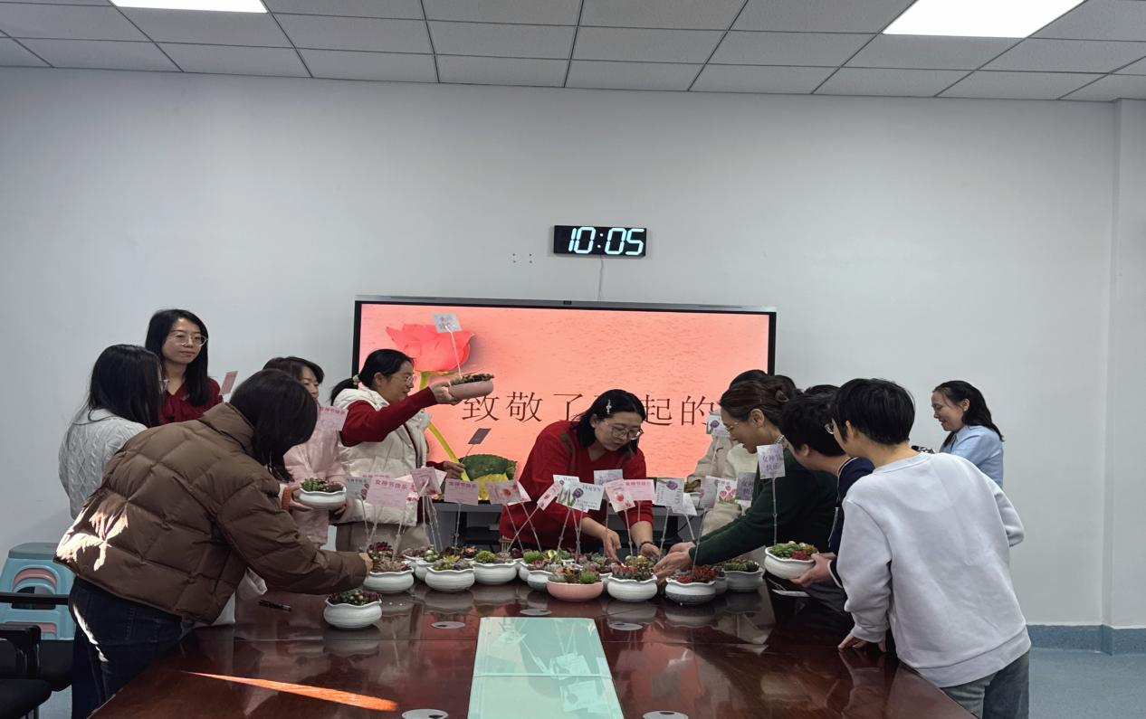 活动中大家学习了多肉植物的养植方式,女职工们亲手挑选心仪的多肉品种,从培土、栽种到铺面、装饰,每一步都倾注着耐心与巧思。一盆盆生机盎然的多肉盆栽在指尖绽放,承载着对美好生活的期许。现场欢声笑语不断,大家互相交流养护心得,分享搭配创意,在动手实践中感受自然疗愈的力量,也拉近了彼此的距离。